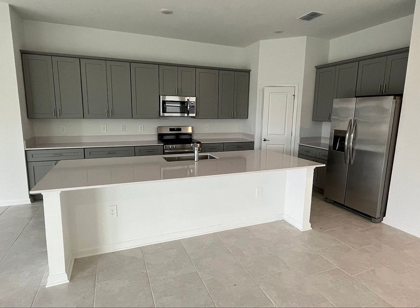 The main kitchen showcases state-of-the-art appliances, elegant quartz countertops, and solid wood cabinetry, blending modern style with everyday functionality.