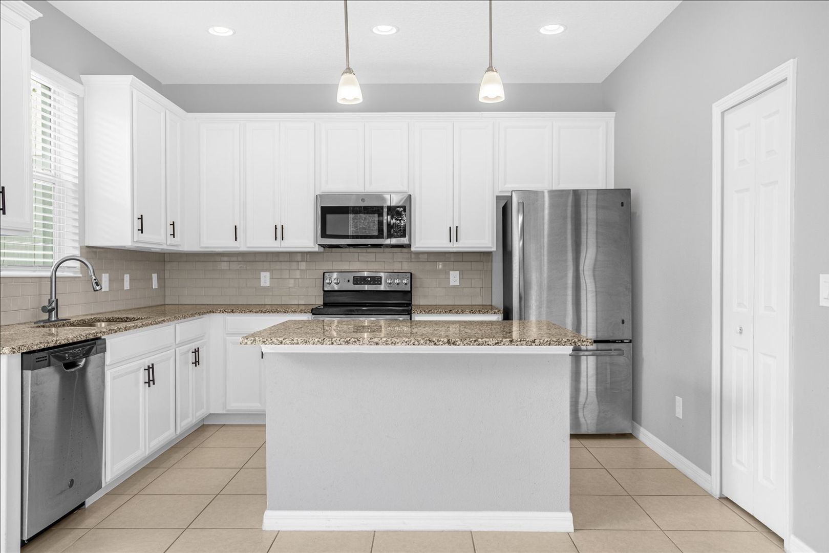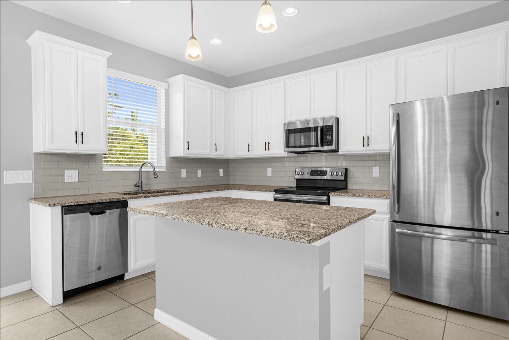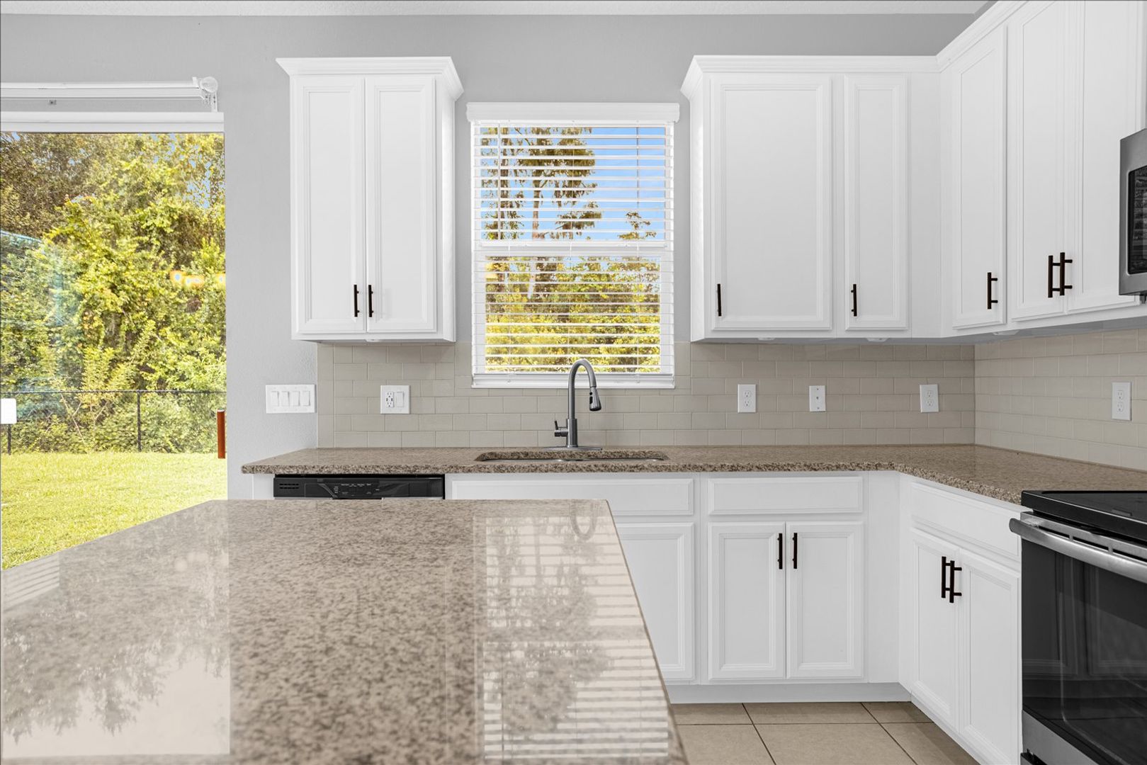 Step inside to an inviting first level highlighted by 9'4" ceilings, abundant natural light, and thoughtful architectural details. The open-concept kitchen is a true centerpiece, featuring stainless-steel appliances, granite countertops, a large center island, and plentiful storage—perfect for home cooks and hosting alike. The adjoining living and dining areas flow seamlessly to the outdoors, where sliding glass doors open to an 8x10 paver patio overlooking a peaceful conservation area. This serene retreat is ideal for morning coffee, grilling, or unwinding at the end of the day.