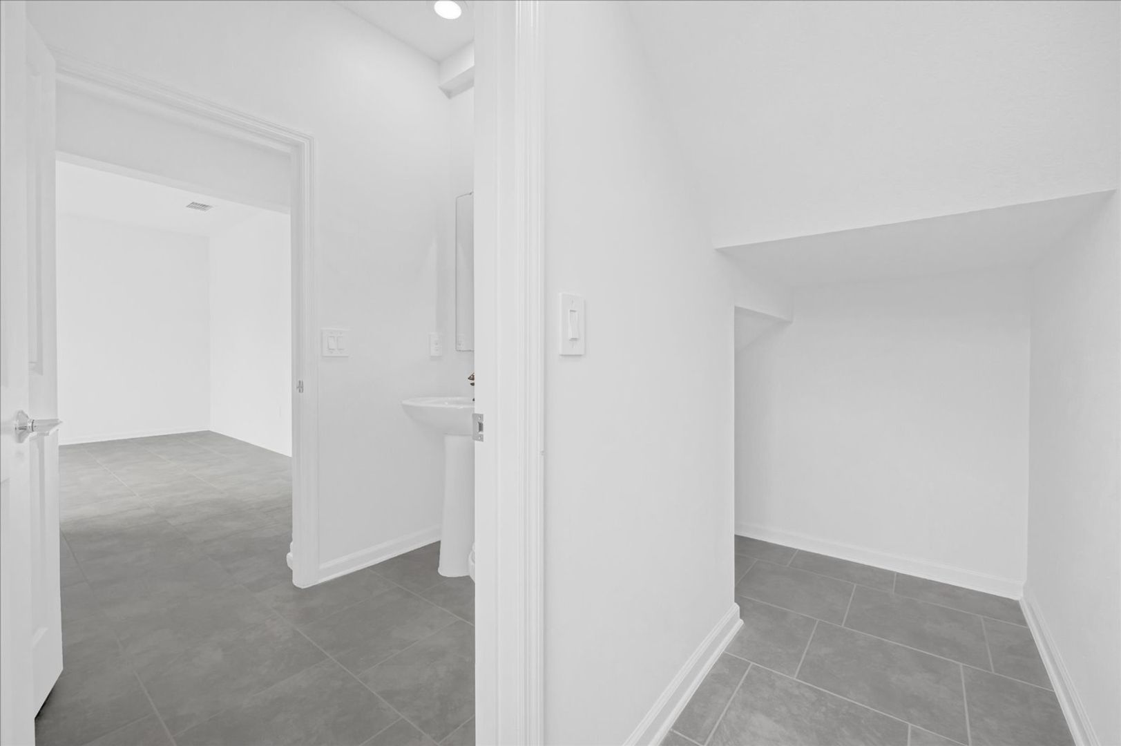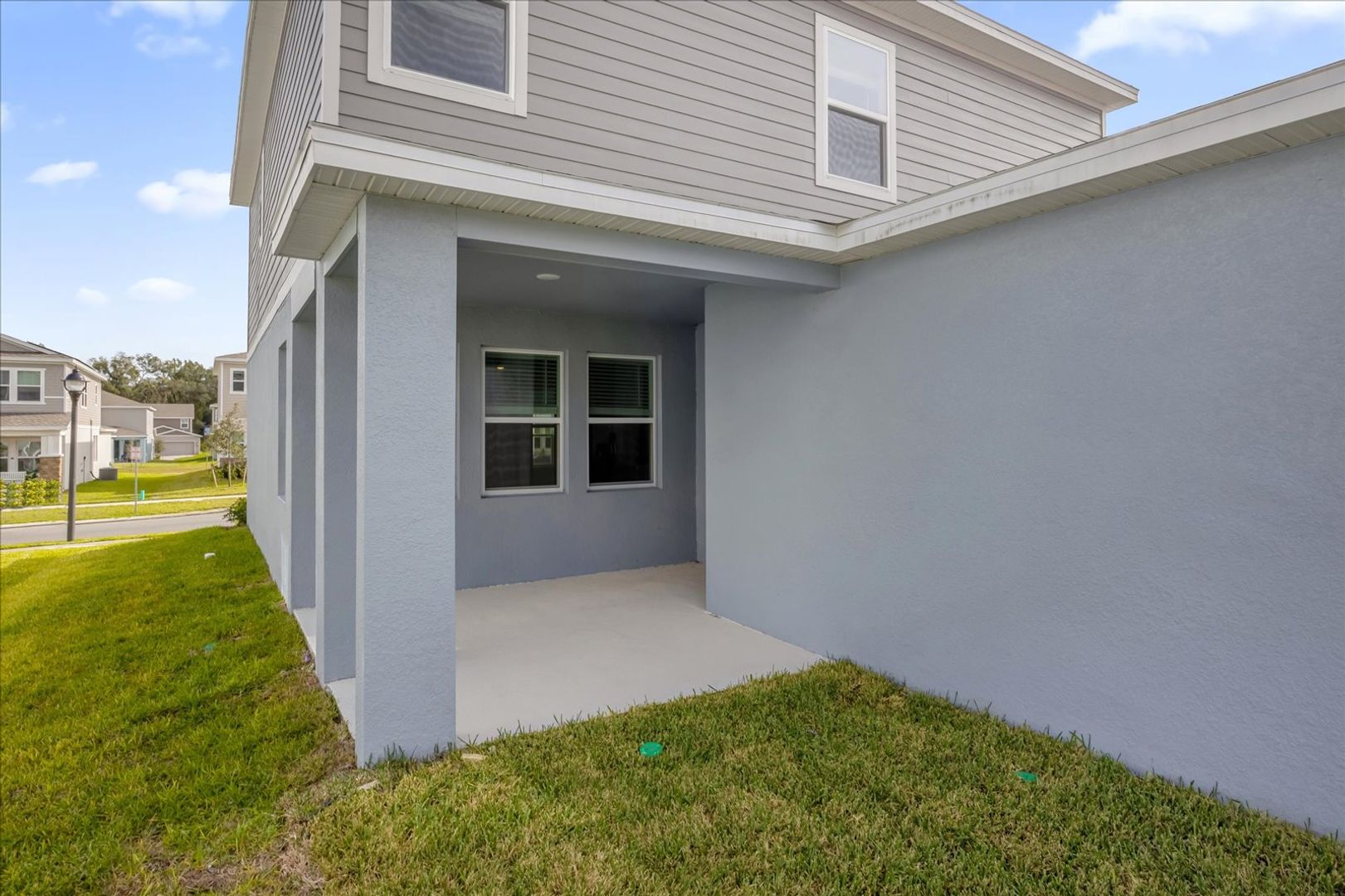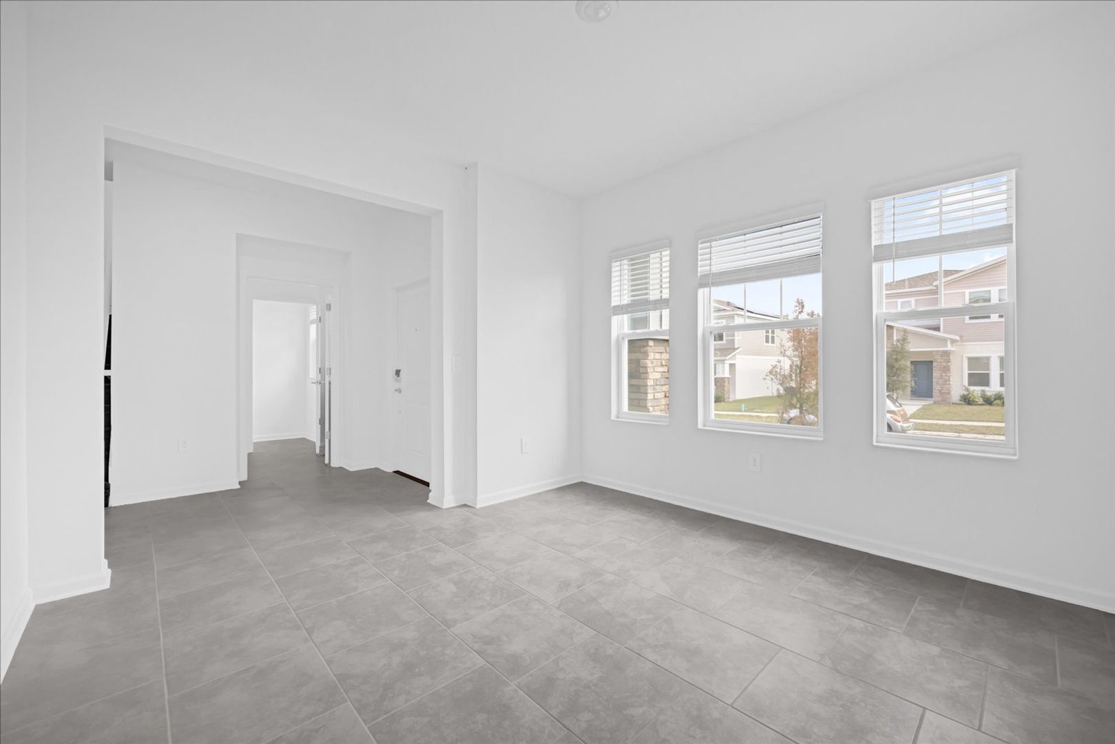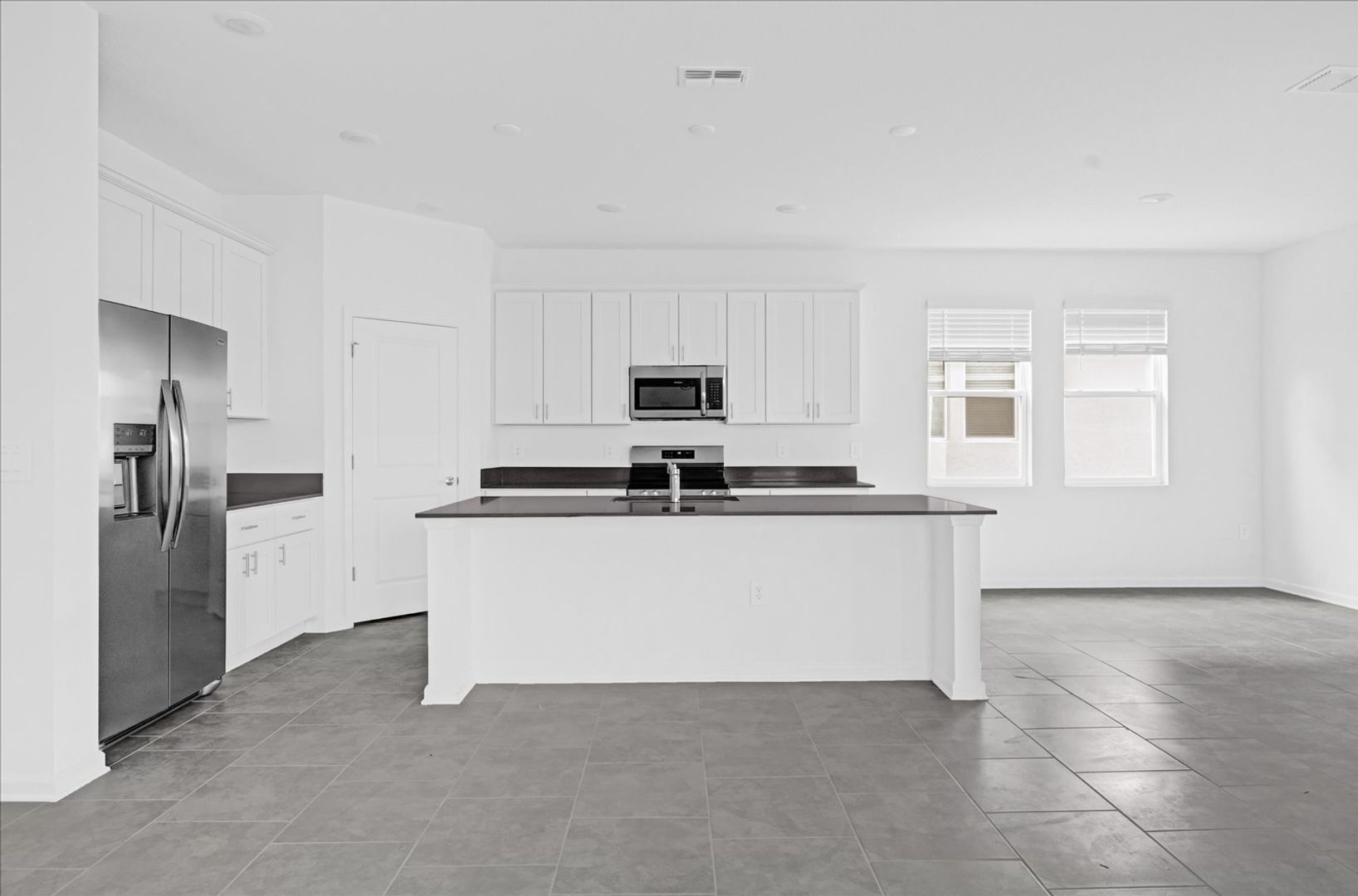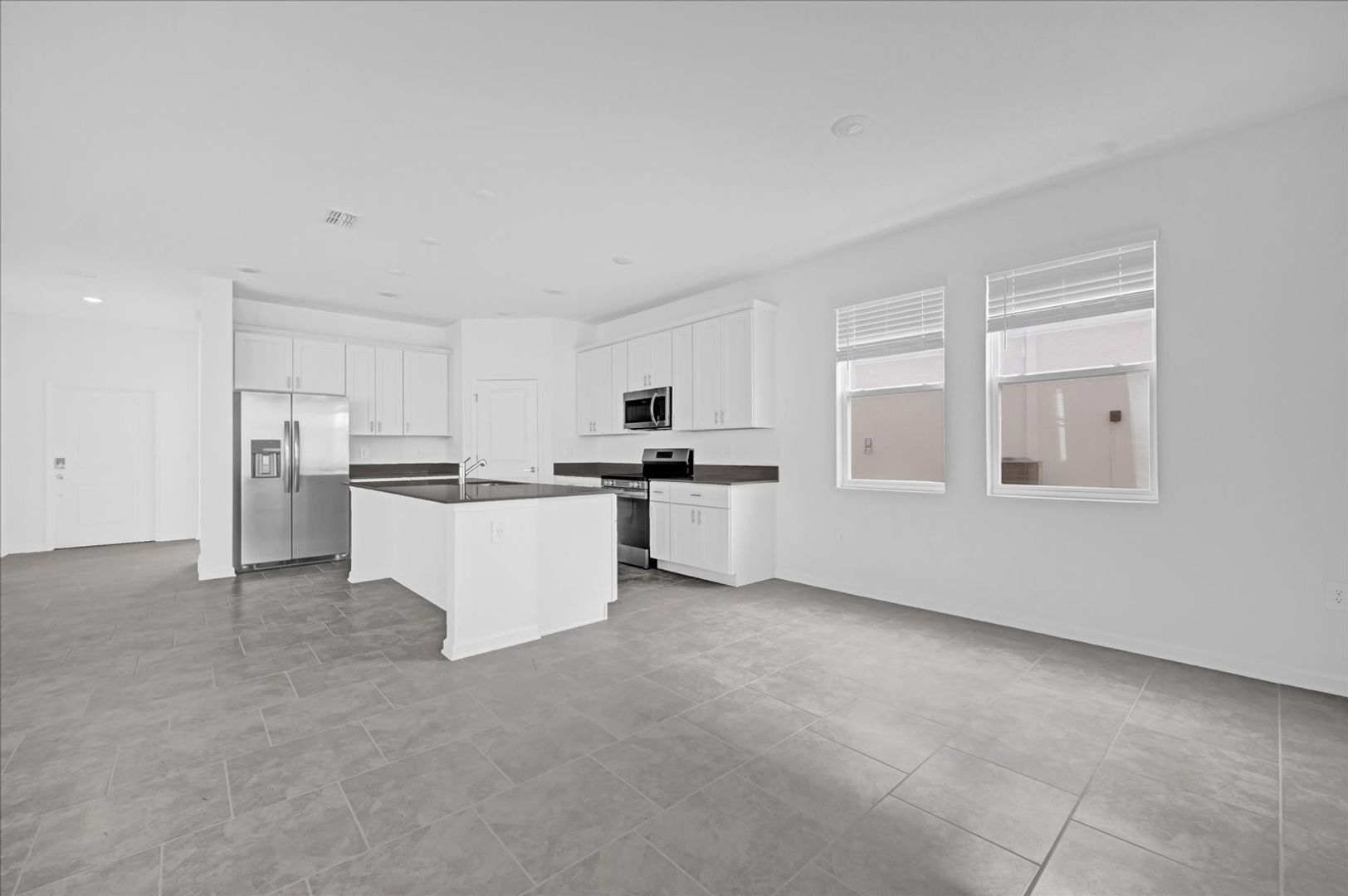 As you enter this enchanting new residence, you'll be welcomed by a cozy den, perfect for establishing your own productive workspace at home. Flowing through the foyer, you’ll discover an open-concept layout that seamlessly connects the bright Great Room, stylish kitchen, and inviting dining area. Beyond lies a rear lanai, providing a peaceful outdoor retreat for relaxation and enjoyment.