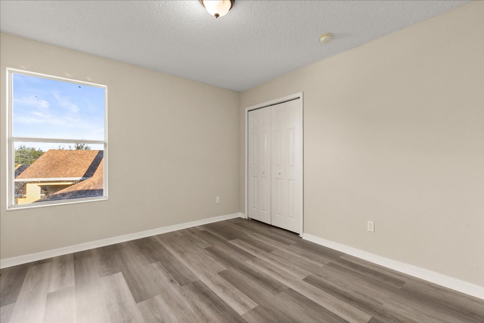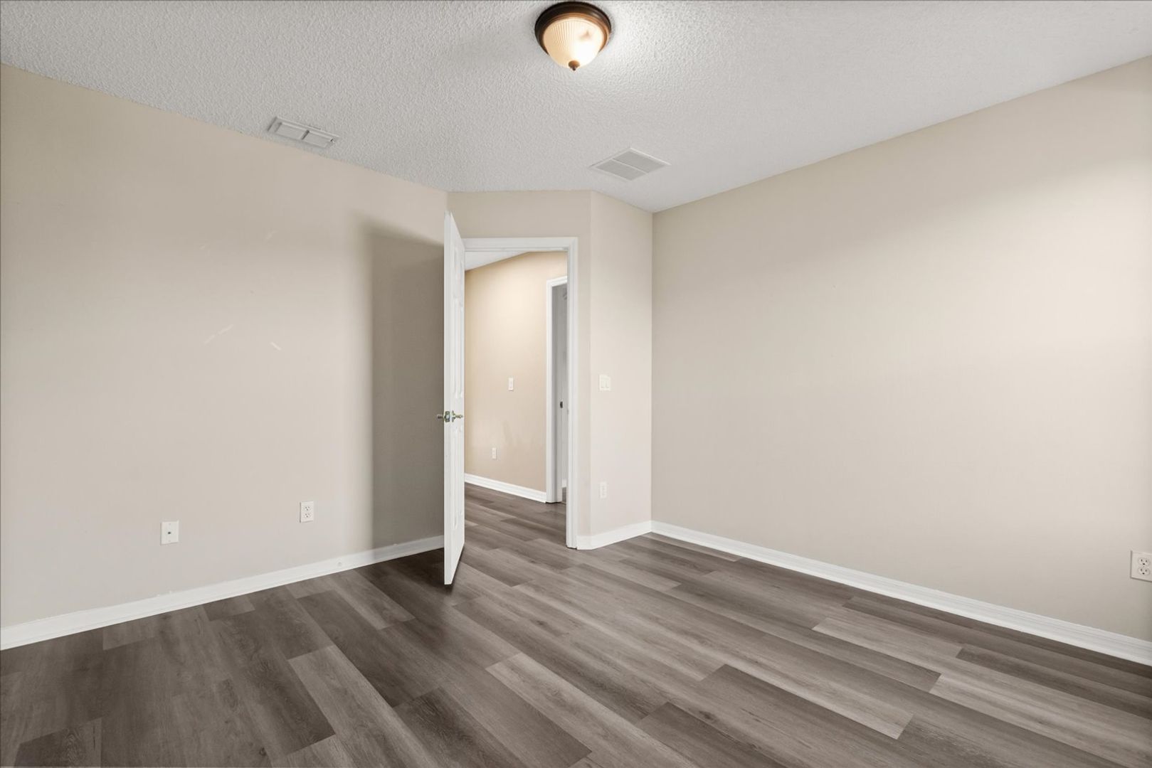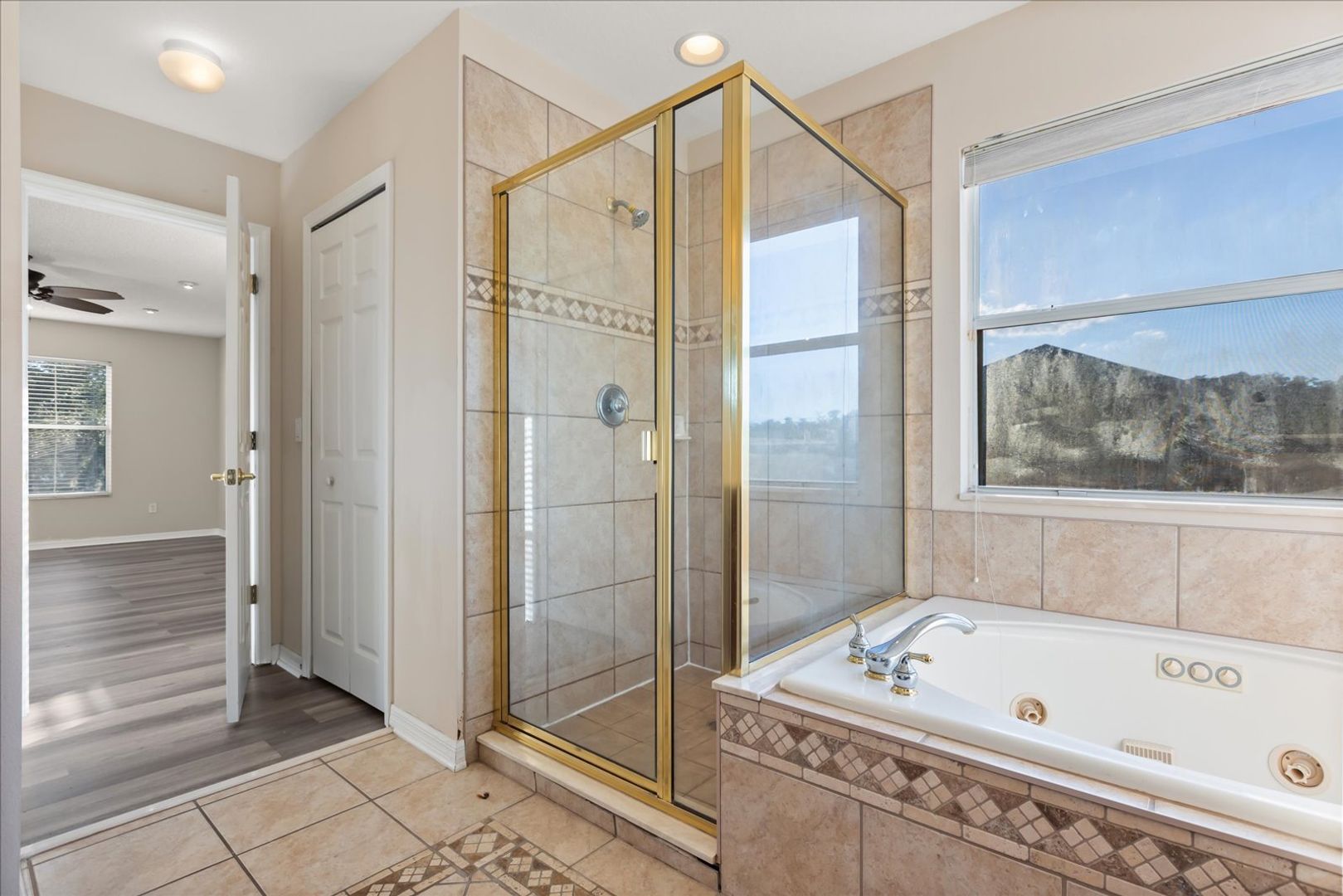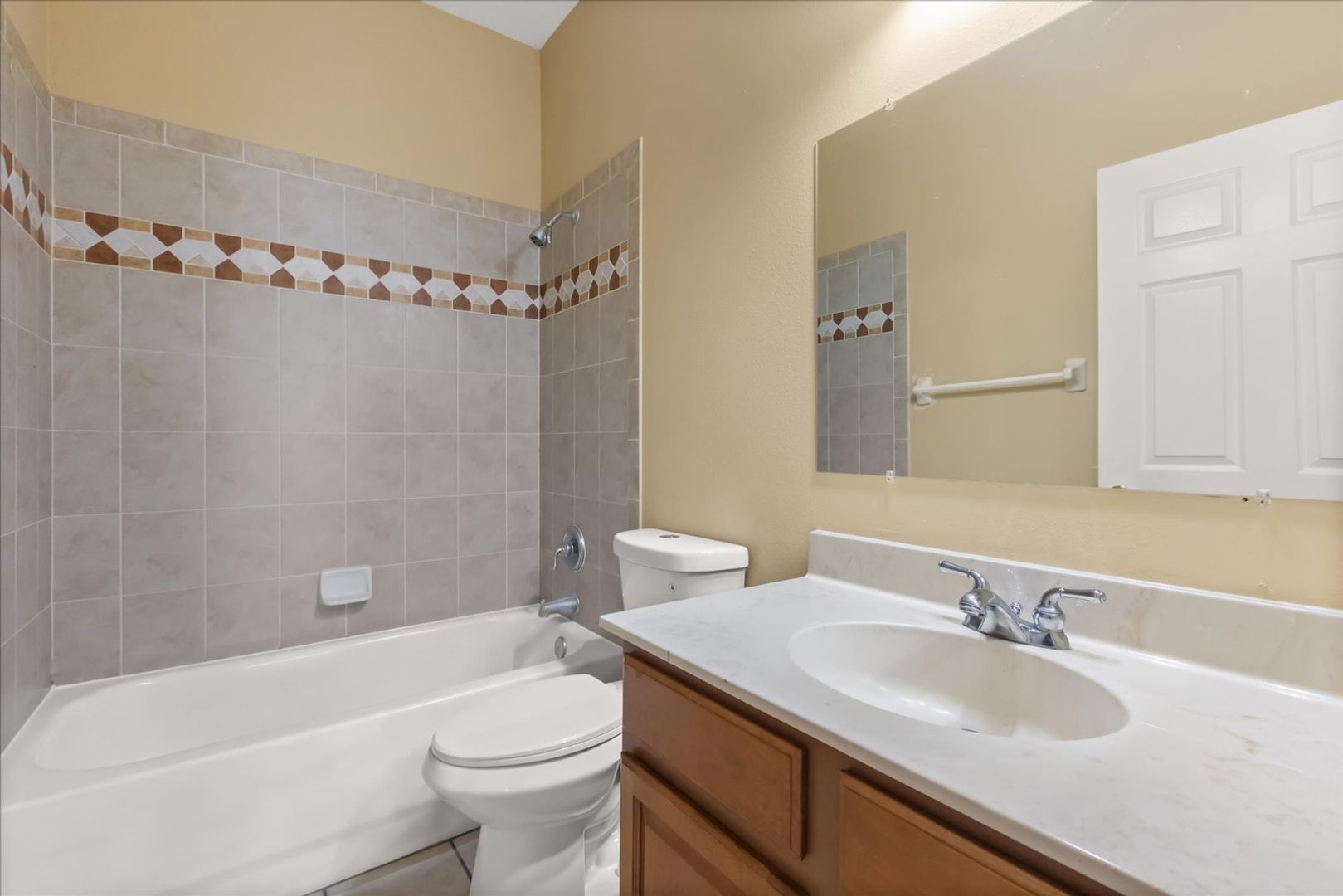 The luxurious master suite offers a spa-like retreat featuring a Jacuzzi tub, dual vanities, and generous closet space. A washer and dryer are included for your convenience, ensuring an easy move-in experience.