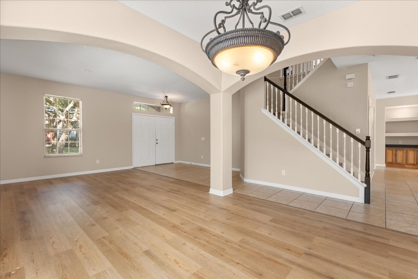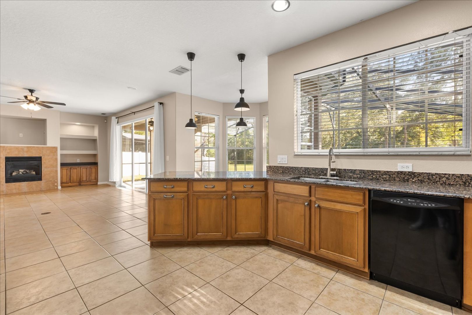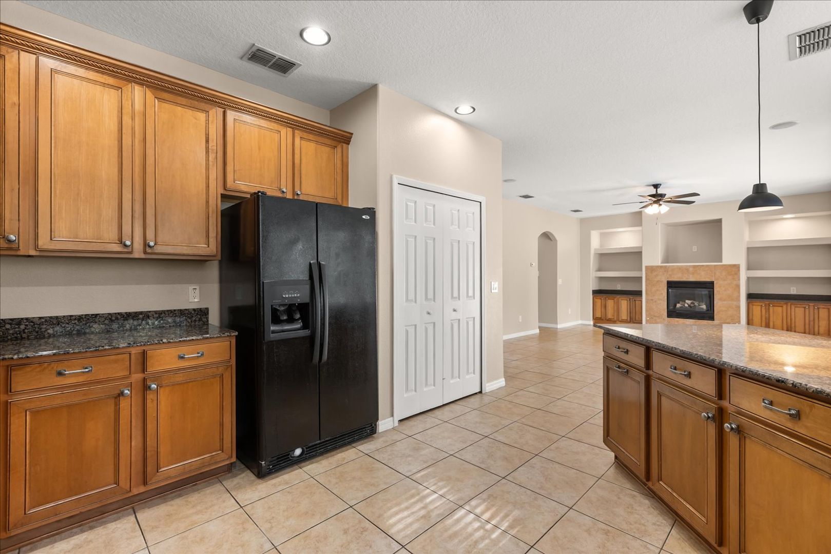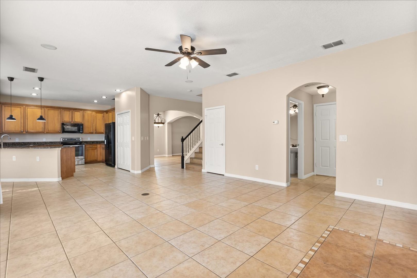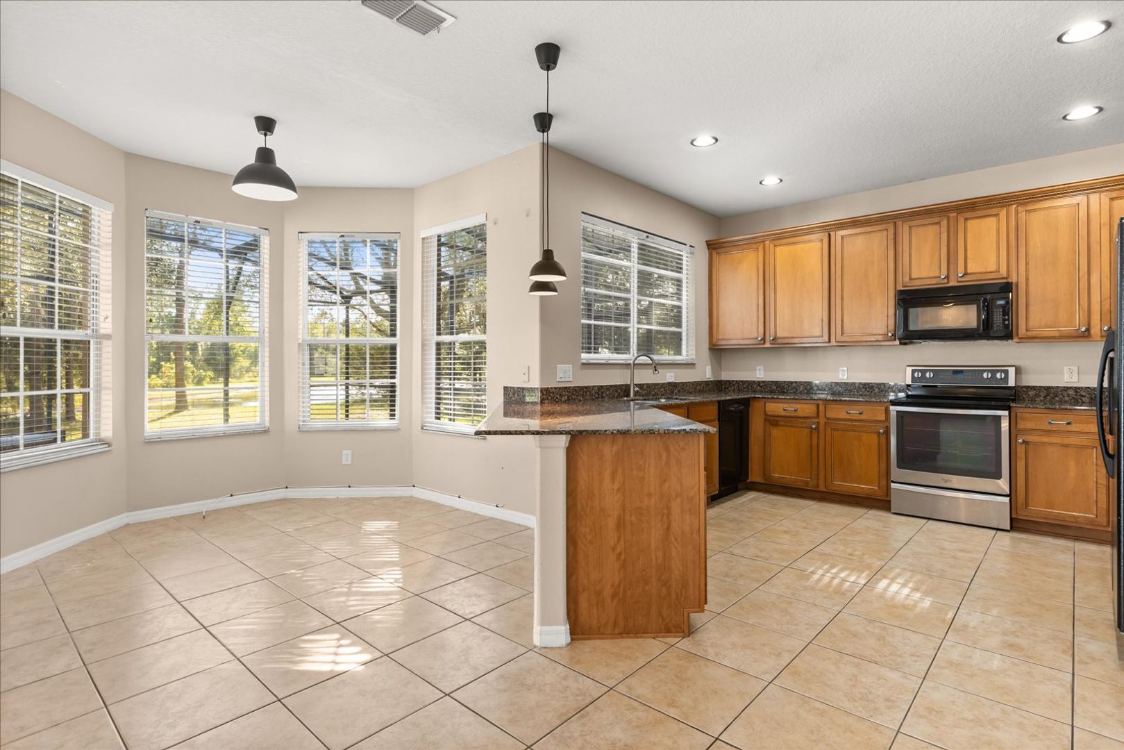 Step inside to discover a bright and spacious open floor plan thoughtfully designed for both comfortable living and effortless entertaining. The gourmet kitchen is a true showpiece, featuring high-end stainless steel appliances, sleek granite countertops, ample cabinetry, and a large breakfast bar that opens to the living and dining areas. Whether you’re hosting guests or enjoying a quiet evening at home, this inviting layout makes every moment feel special.