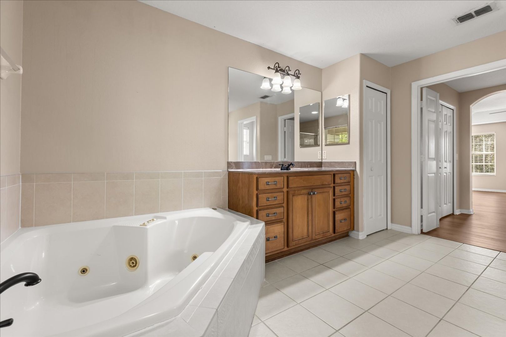 The primary suite serves as your own private retreat, complete with a spacious walk-in closet and a luxurious en-suite bathroom featuring dual vanities and a soaking tub—perfect for unwinding after a long day. Additional bedrooms offer versatility for family, guests, or a dedicated home office.