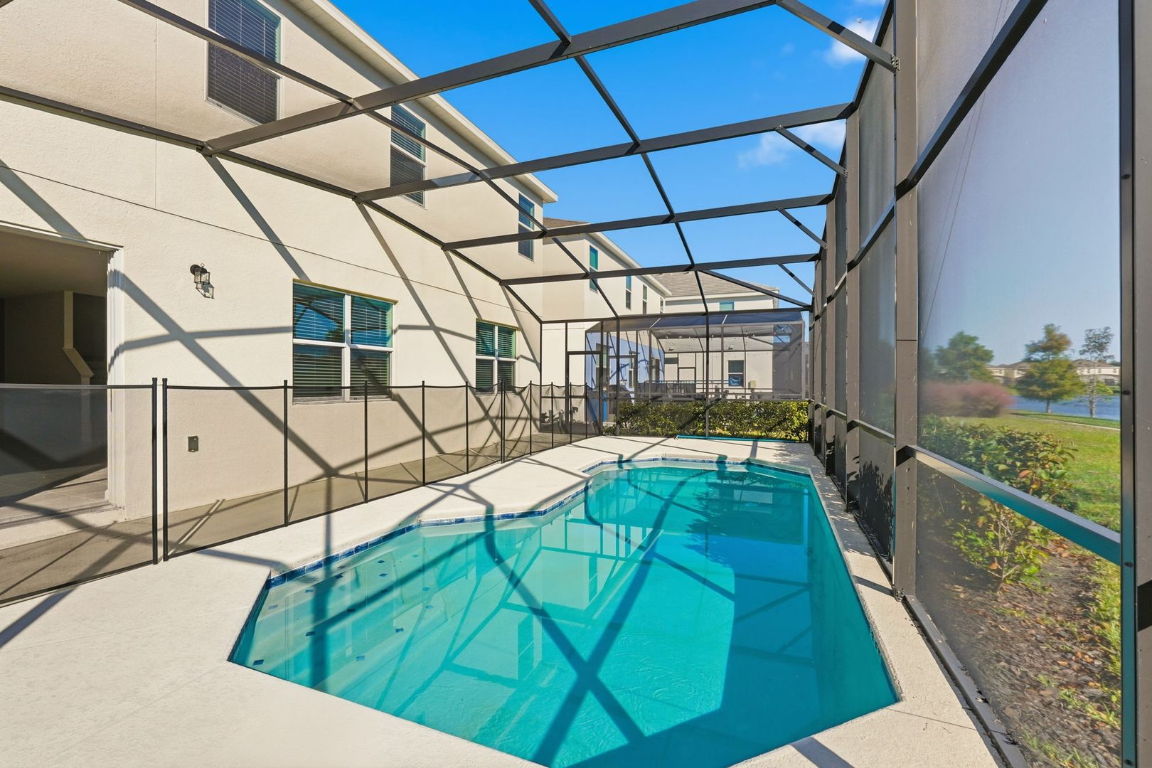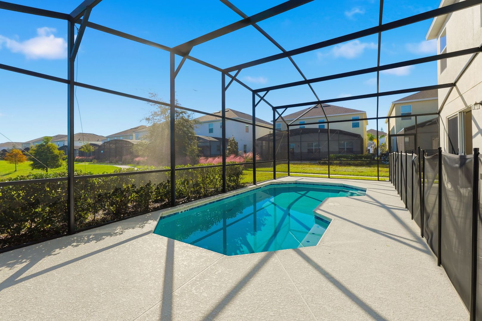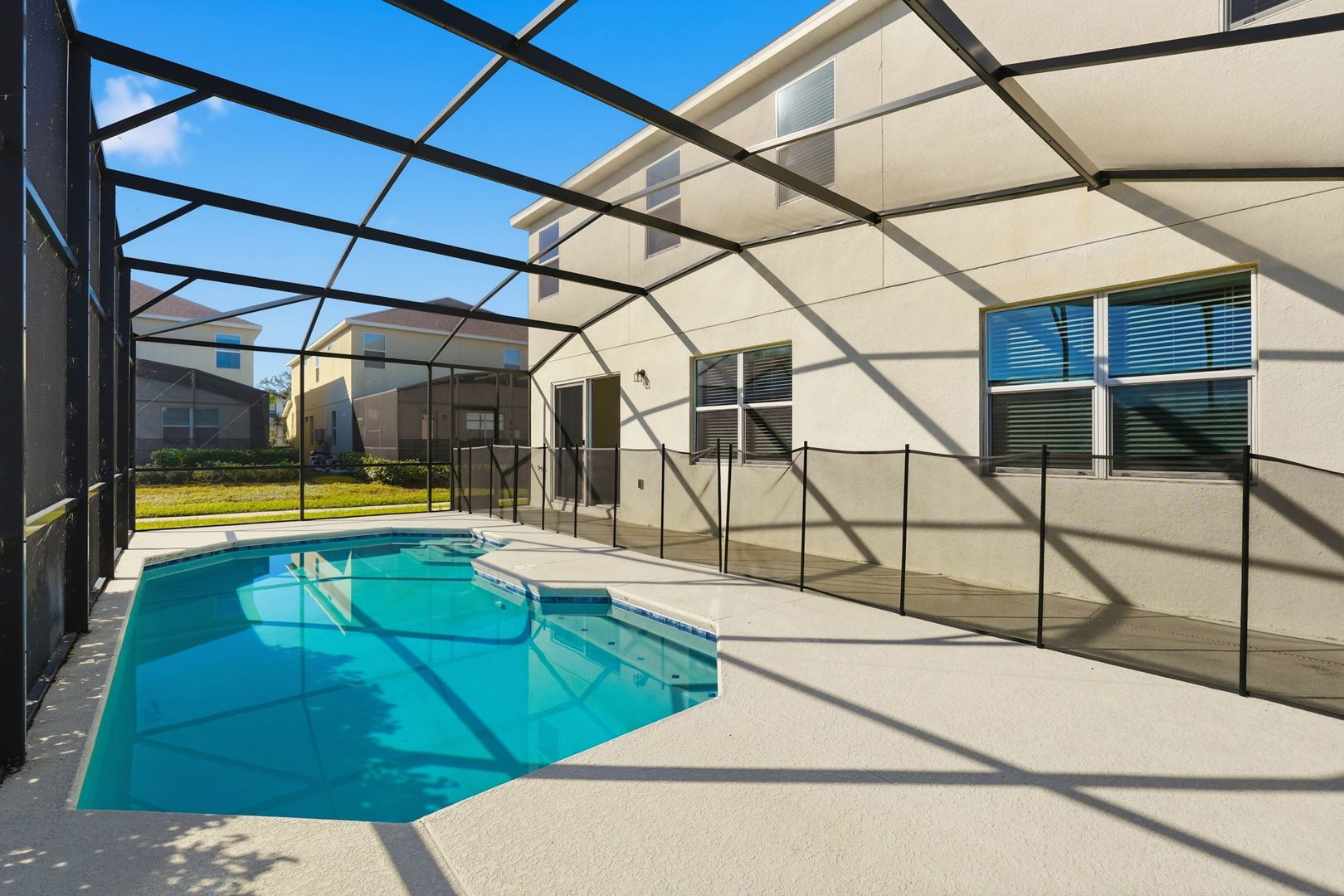 Enjoy Florida living at its best with your own private screened-in pool, ideal for outdoor fun and relaxation. Additional features include a two-car garage and generous living space for large families or group stays.