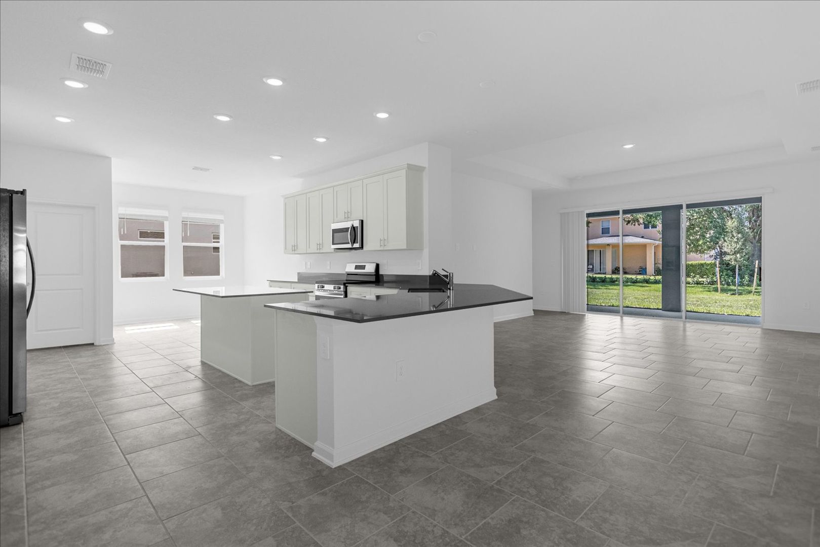 Discover the opportunity to lease a brand-new construction home in the tranquil town of Apopka. The Largo design masterfully combines modern comfort and contemporary style, creating an inviting and functional living space. This thoughtfully designed home features an open-plan layout that seamlessly connects the kitchen, family room, and both casual and formal dining areas, promoting a harmonious flow ideal for everyday living and entertaining. Nearby sliding glass doors open to an intimate lanai, offering a perfect spot to enjoy the outdoors from the comfort of your home.