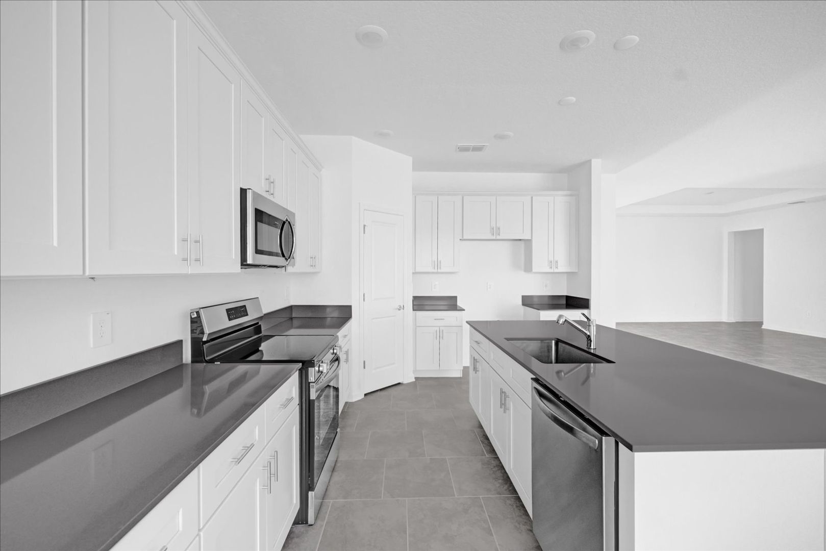 Explore the exceptional opportunity to lease a newly built home in the peaceful and picturesque town of Apopka. The Largo design seamlessly blends modern convenience with sophisticated style, offering a spacious and inviting environment. The open-concept layout is thoughtfully designed to enhance the flow of daily life, effortlessly connecting the kitchen, family room, and both casual and formal dining areas. This creates the ideal setting for relaxed living and entertaining guests. Sliding glass doors open to an intimate lanai, providing a tranquil outdoor space where you can unwind and enjoy the beauty of nature from the comfort of your own home.