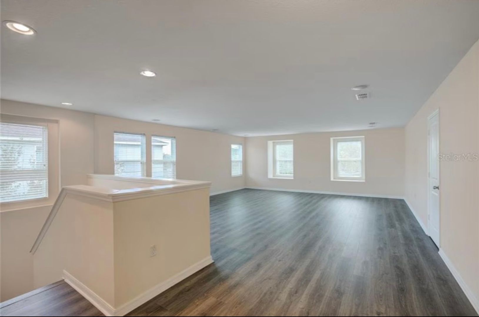 A large upstairs loft ideal for a media room, play area, or additional living space