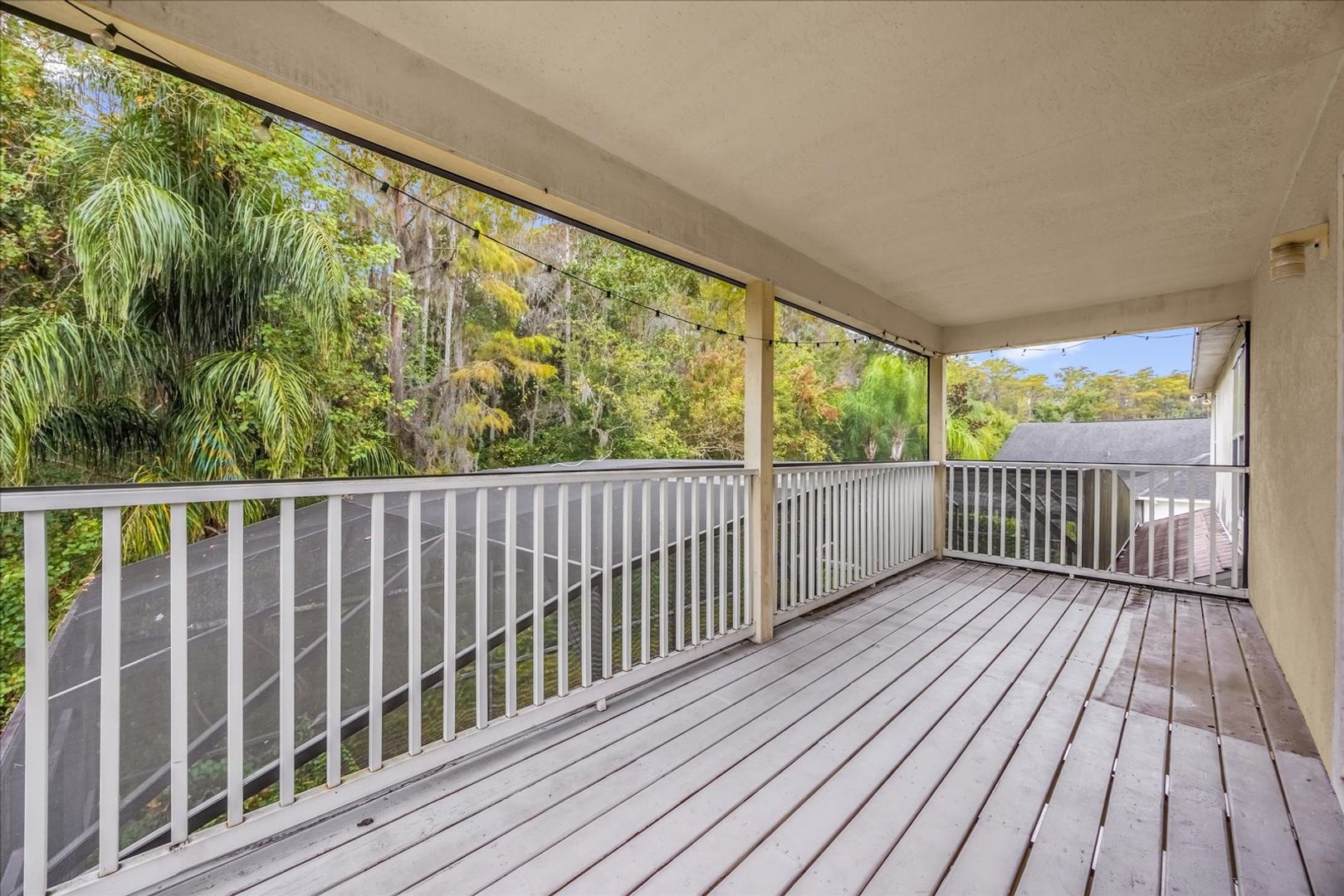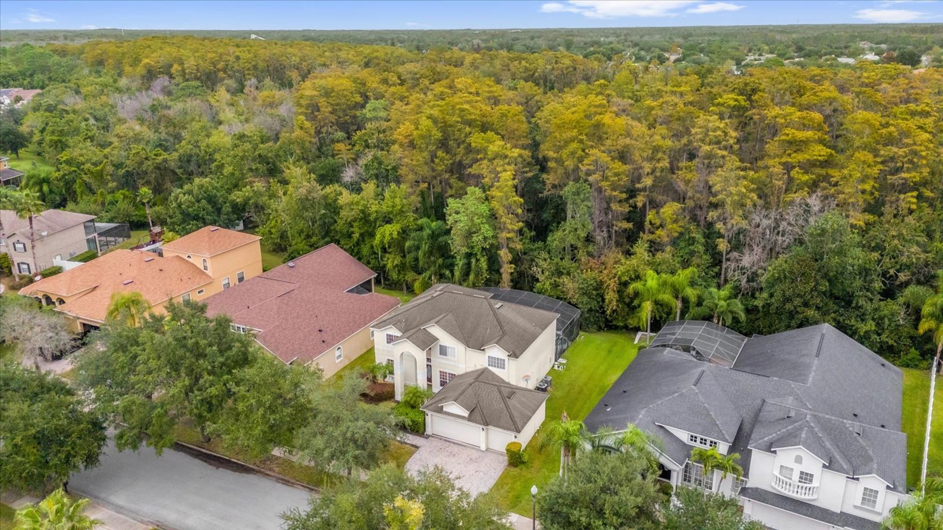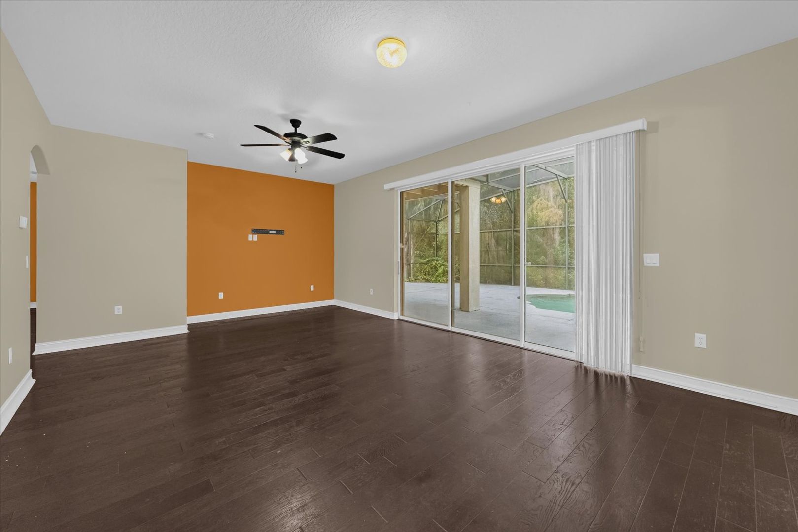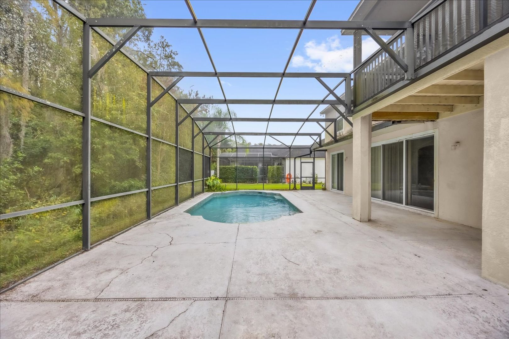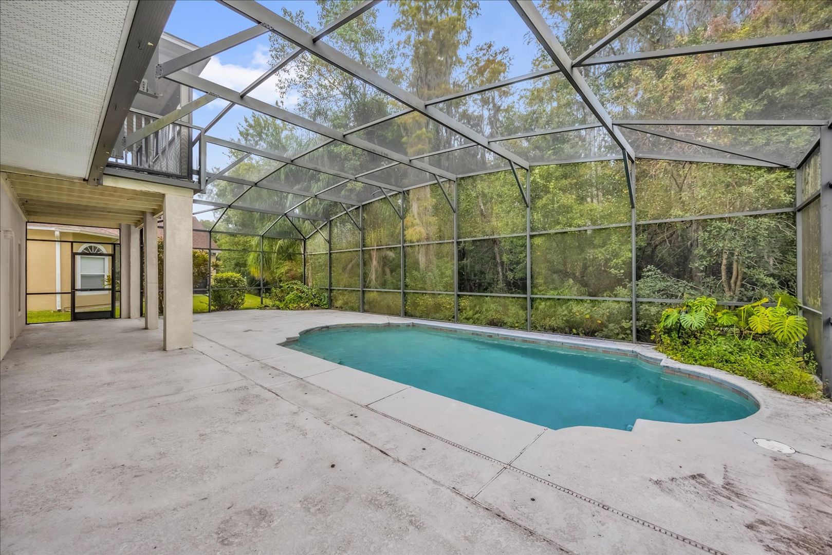 Outside, relax or entertain in your private screened-in pool with a tranquil backdrop of lush nature. The home also includes a three-car garage, providing ample space for parking and storage.