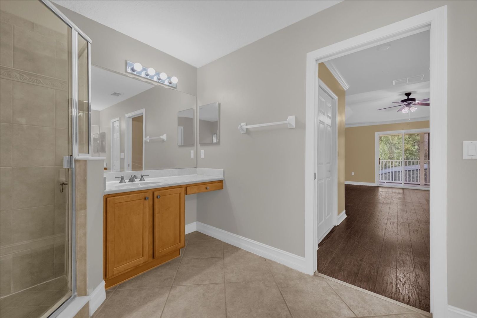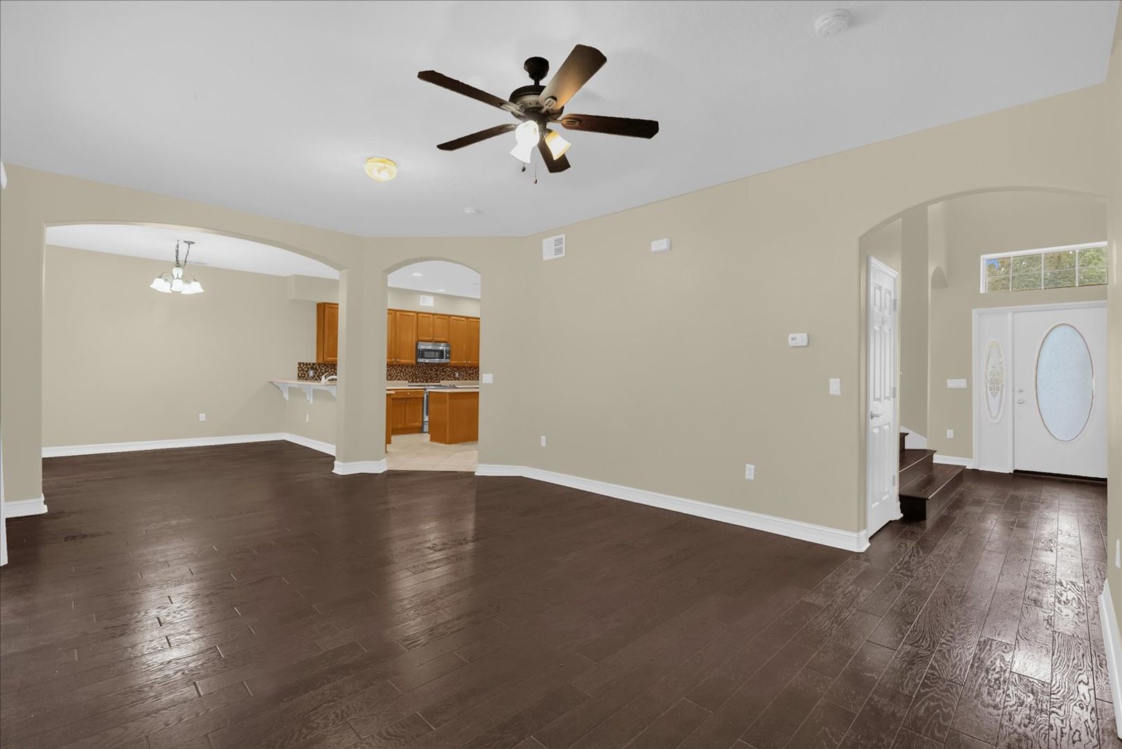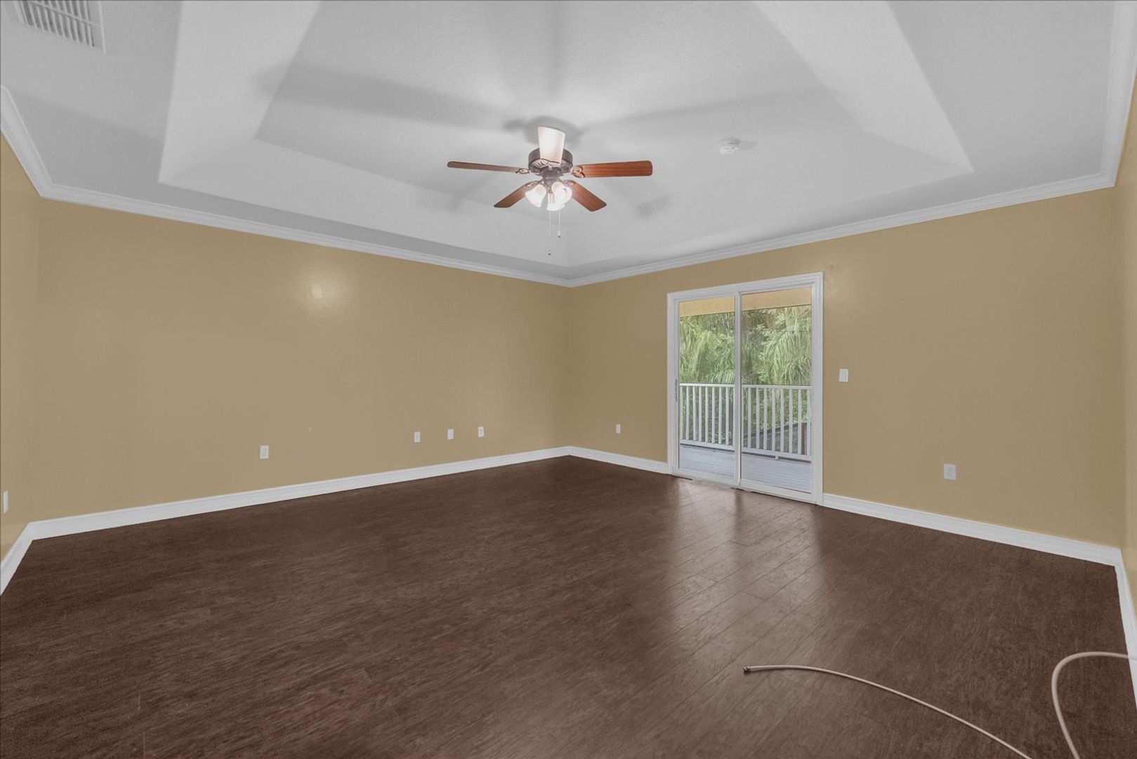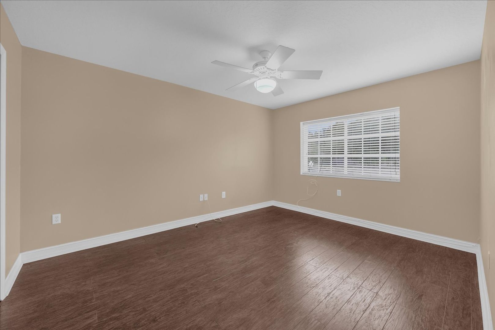 Outside, relax or entertain in your private screened-in pool with a tranquil backdrop of lush nature. The home also includes a three-car garage, providing ample space for parking and storage.