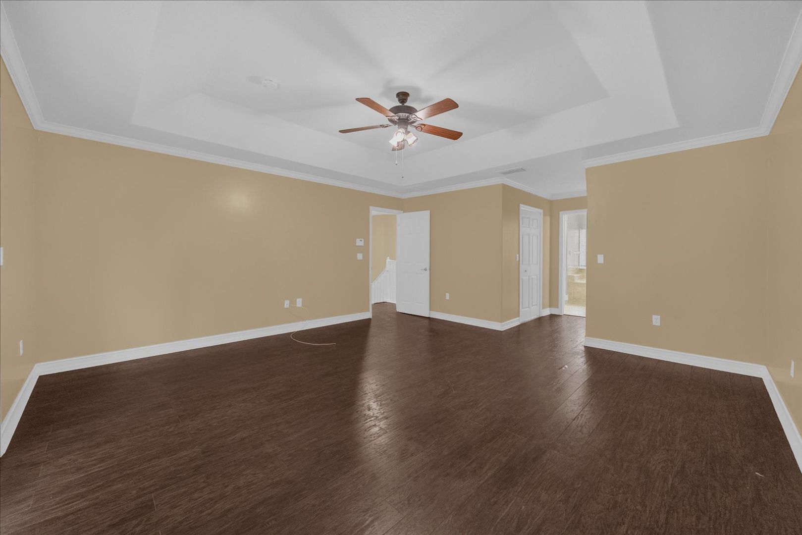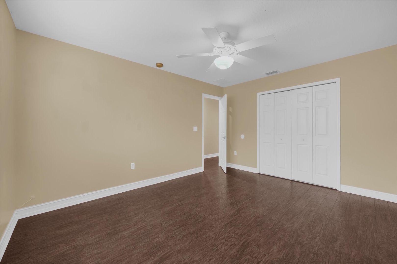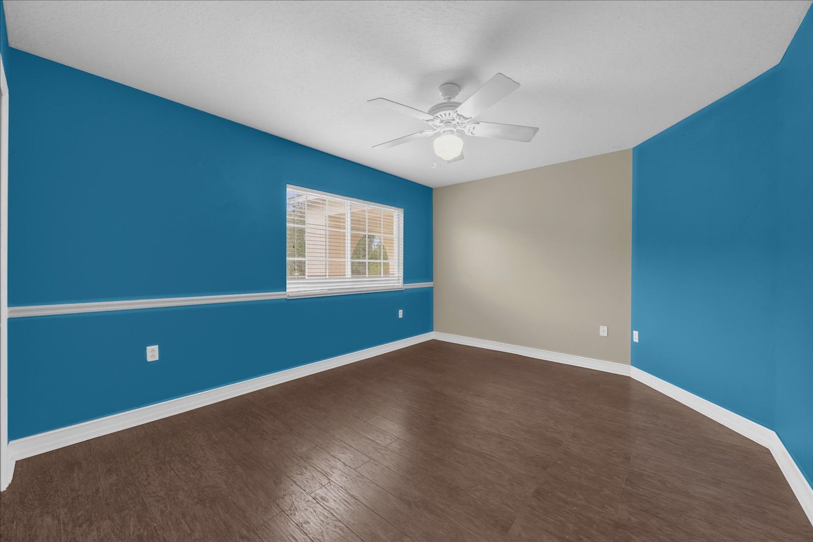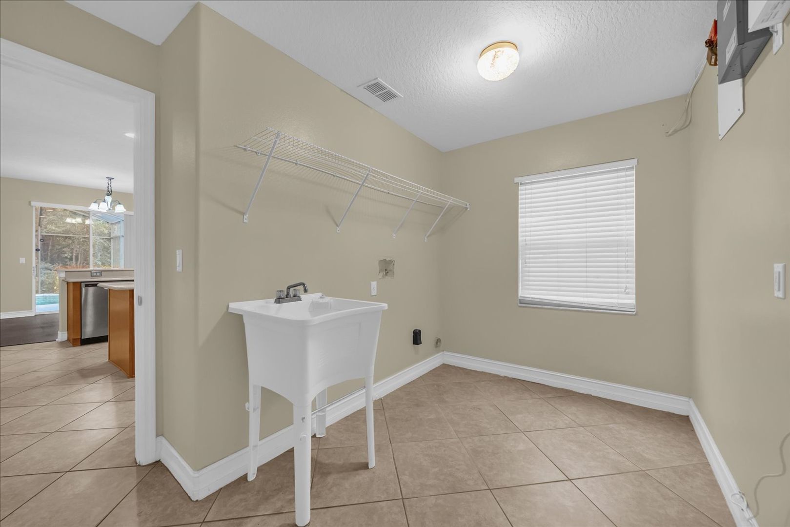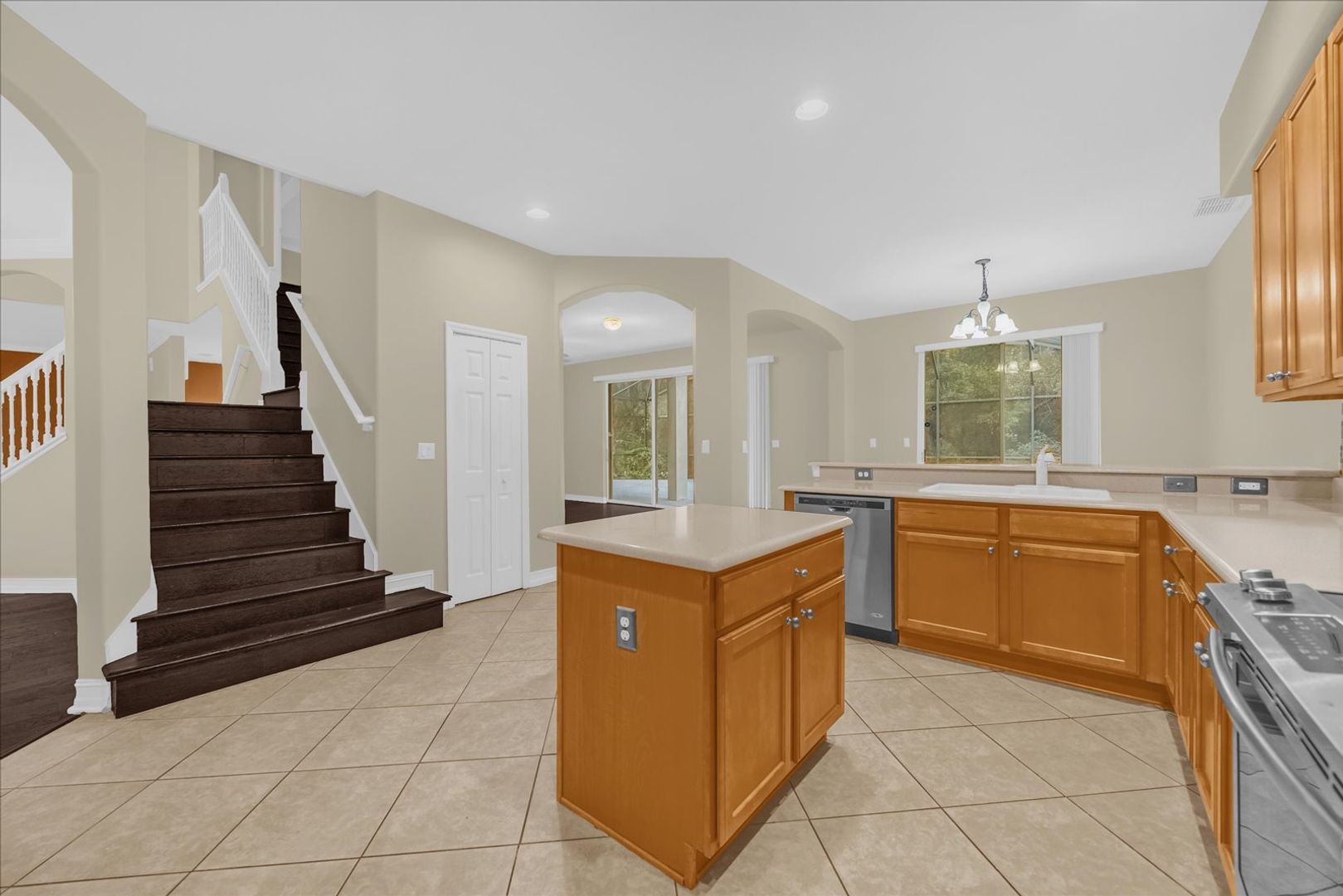 Outside, relax or entertain in your private screened-in pool with a tranquil backdrop of lush nature. The home also includes a three-car garage, providing ample space for parking and storage.