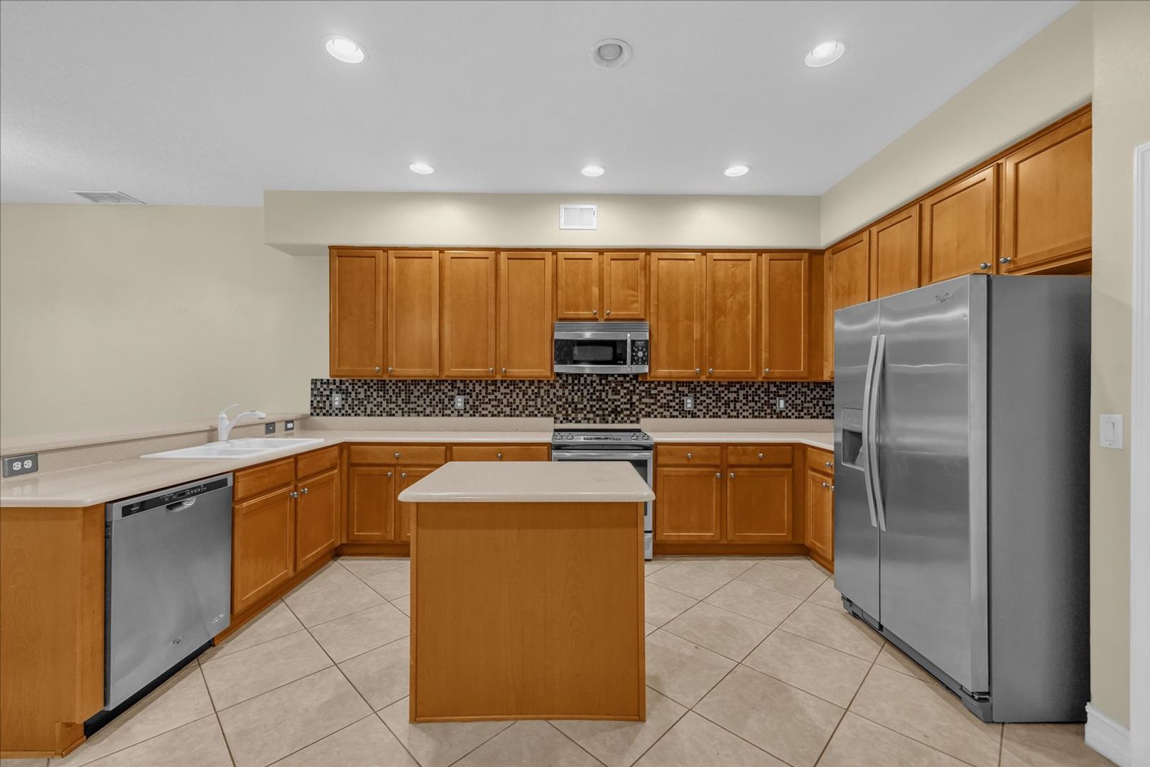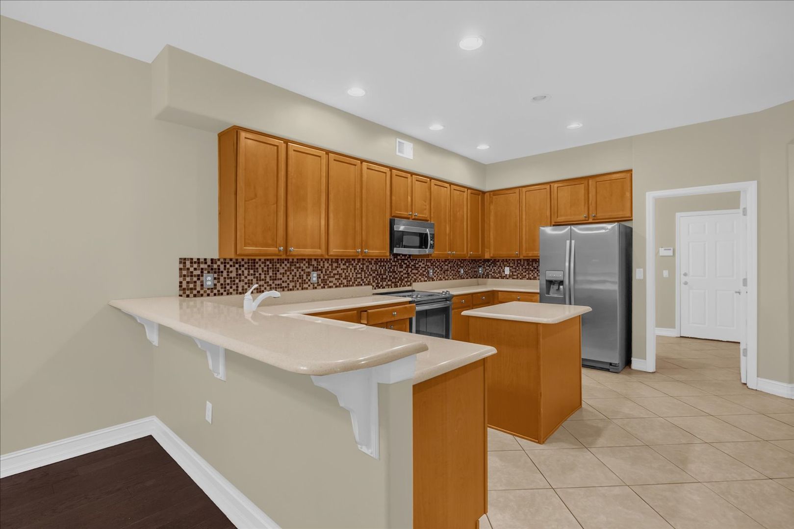 Step inside to discover an open-concept floor plan highlighted by rich hardwood flooring throughout and an abundance of natural light. The updated kitchen is a true chef’s delight, featuring Corian countertops, a trendy tile backsplash, and stainless steel appliances, along with a charming breakfast nook that overlooks the pool and greenery. For more formal occasions, enjoy the separate dining area, ideal for entertaining guests or hosting family dinners.
