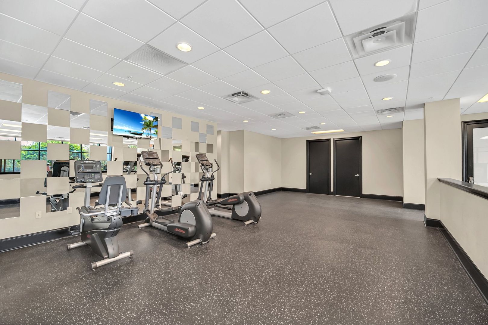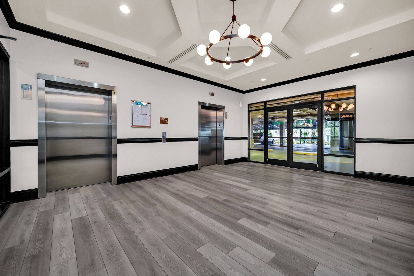 The building offers premium amenities, including a pool with spa, covered garage parking, fitness center, and a theater room. The lobby has been recently renovated with a modern, stylish design, along with a new game room, updated mail room, and upgraded gym facilities.